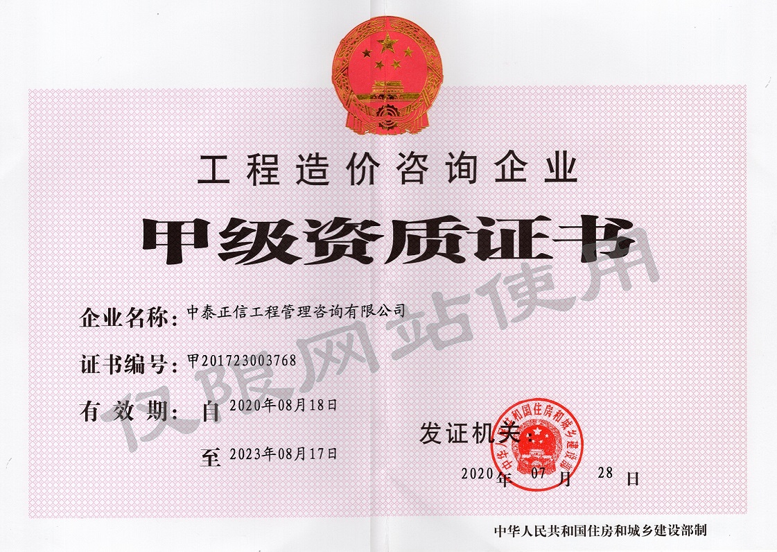 工程造價(jià)咨詢甲級(jí)資質(zhì)證書(shū)