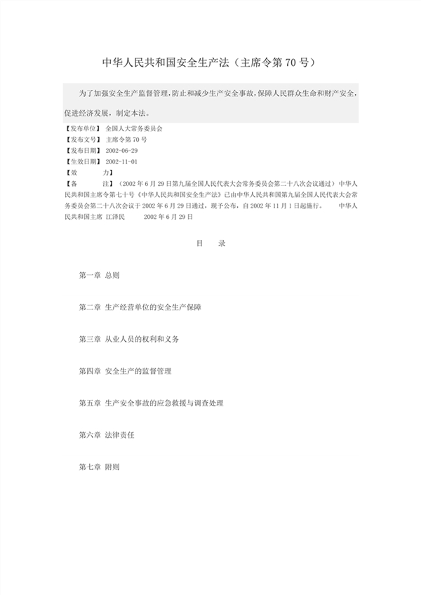 中華人民共和國主席令第70號中華人民共和國安全生產法